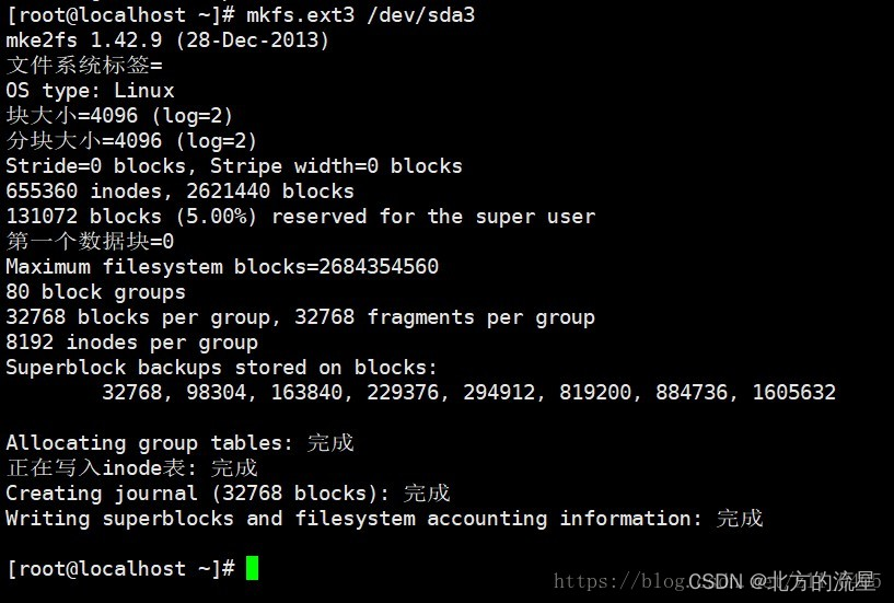 mkfs.ext3 /dev/sda3